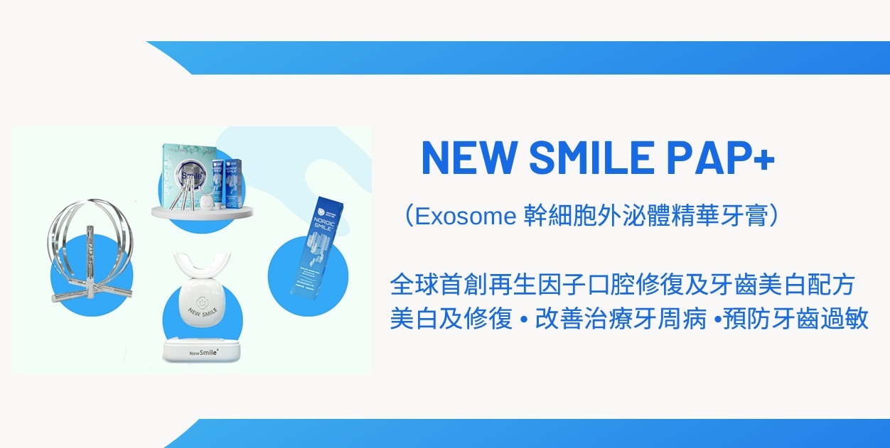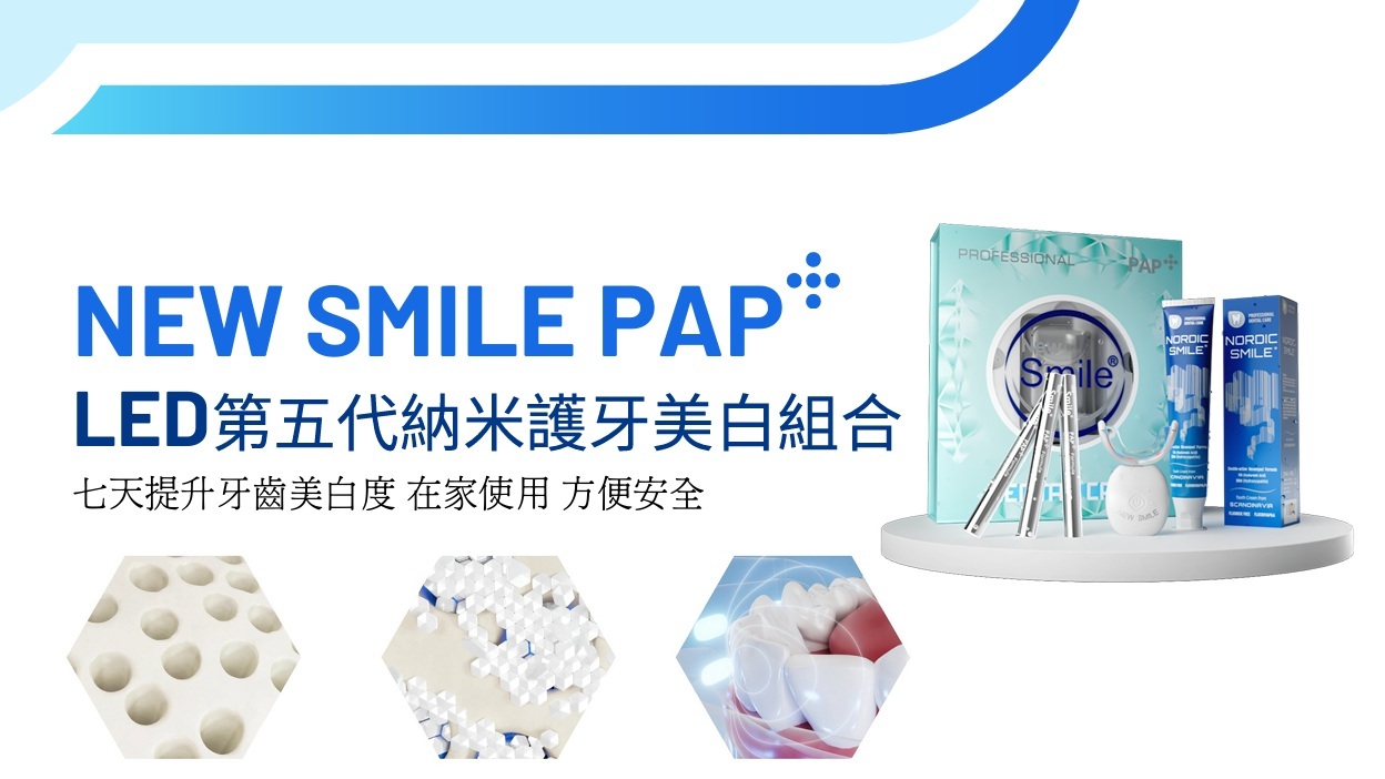 全新第五代New Smile PAP+納米護牙美白組合運用專利LED紅藍混合光療技術,全球首創再生因子口腔修復及牙齒美白配方,完全覆蓋整個牙齒表面,達到5倍強力美白及修復,去牙黃、去煙漬、咖啡漬、治療牙周病、預防牙齒過敏,好似鑽石一樣閃耀全場!