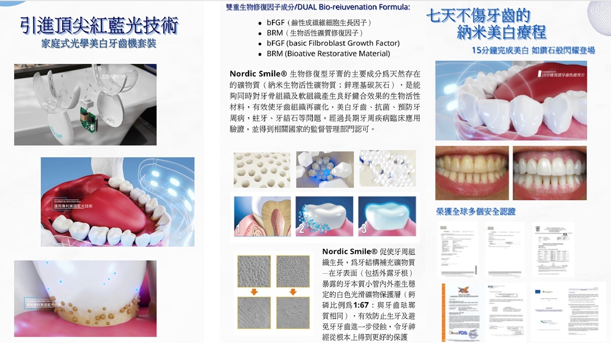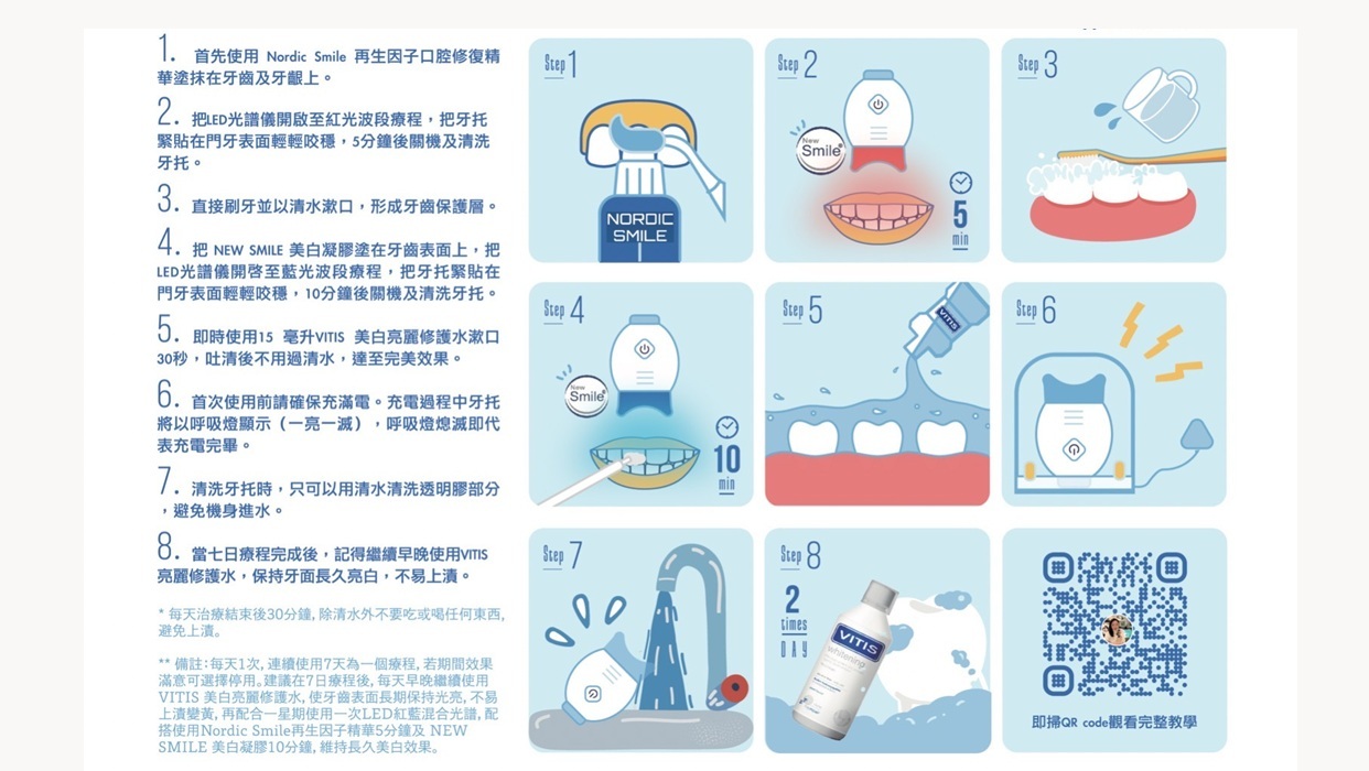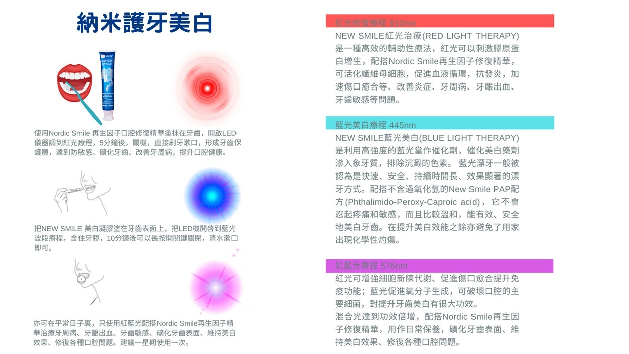 1.紅光波段、配搭Nordic Smile 再生因子修復牙膏