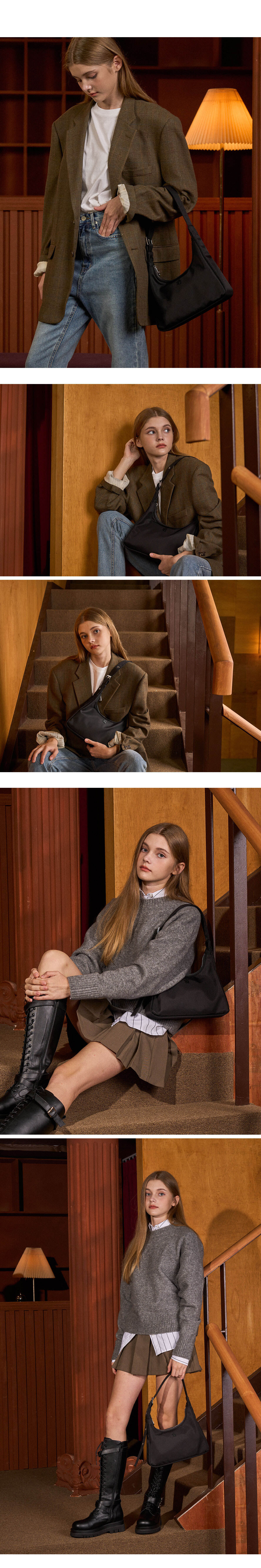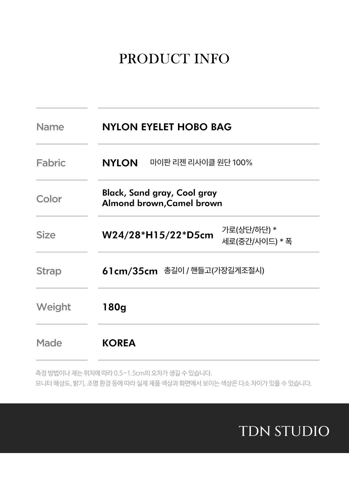 TRM Recycle Nylon Eyelet hobo bag T19W | BLACK