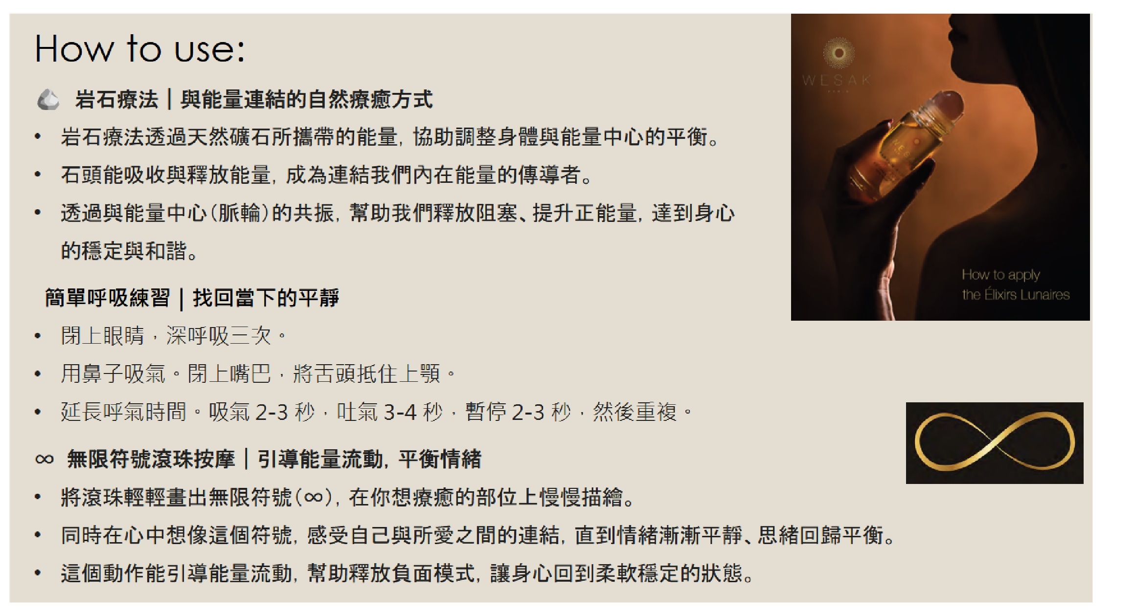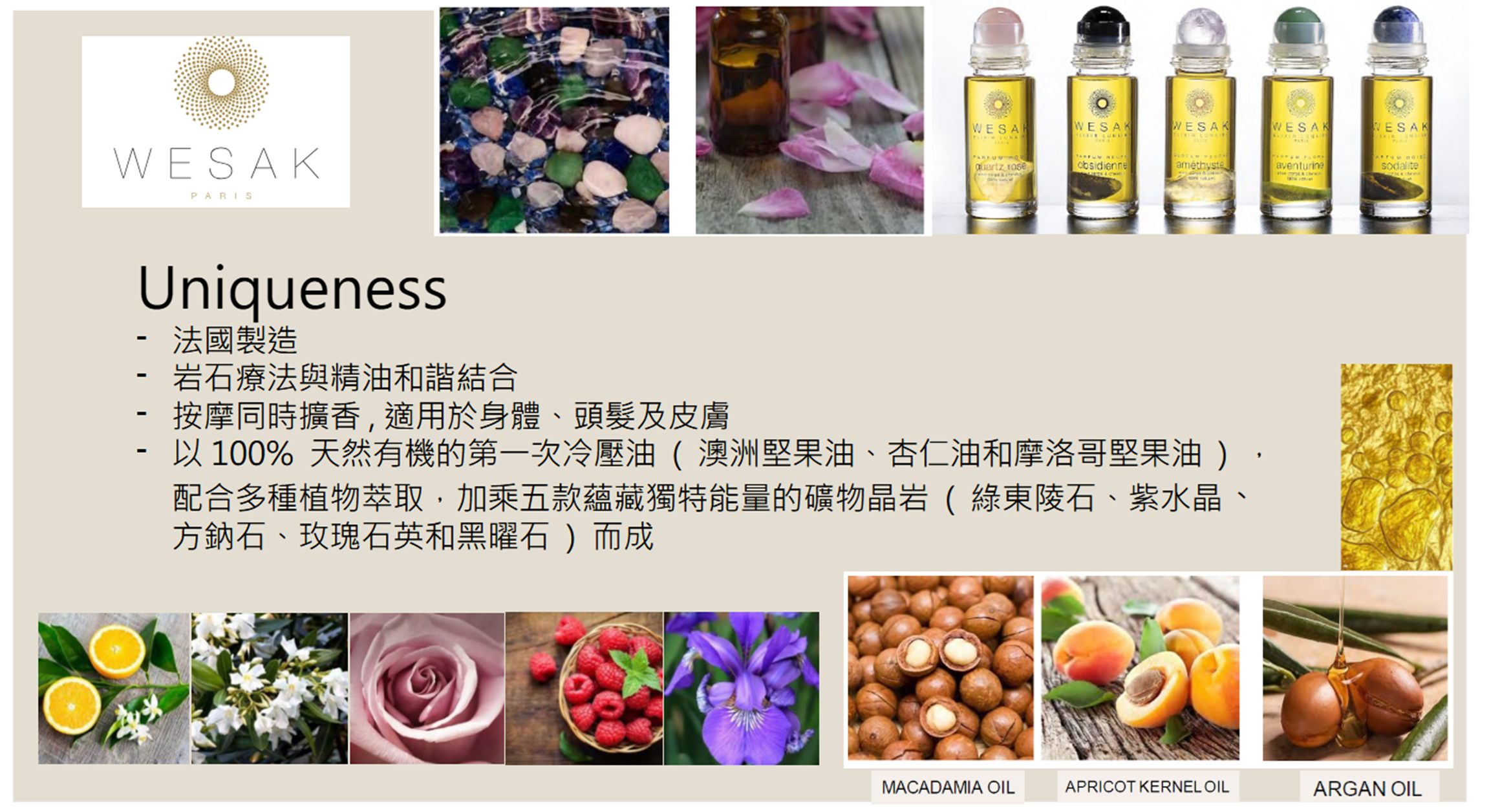 An infused Sodalite gemstone and a blend of precious vegetable and essential oils have been combined in a unique concept with unique vibrating, moisturizing and energizing properties.