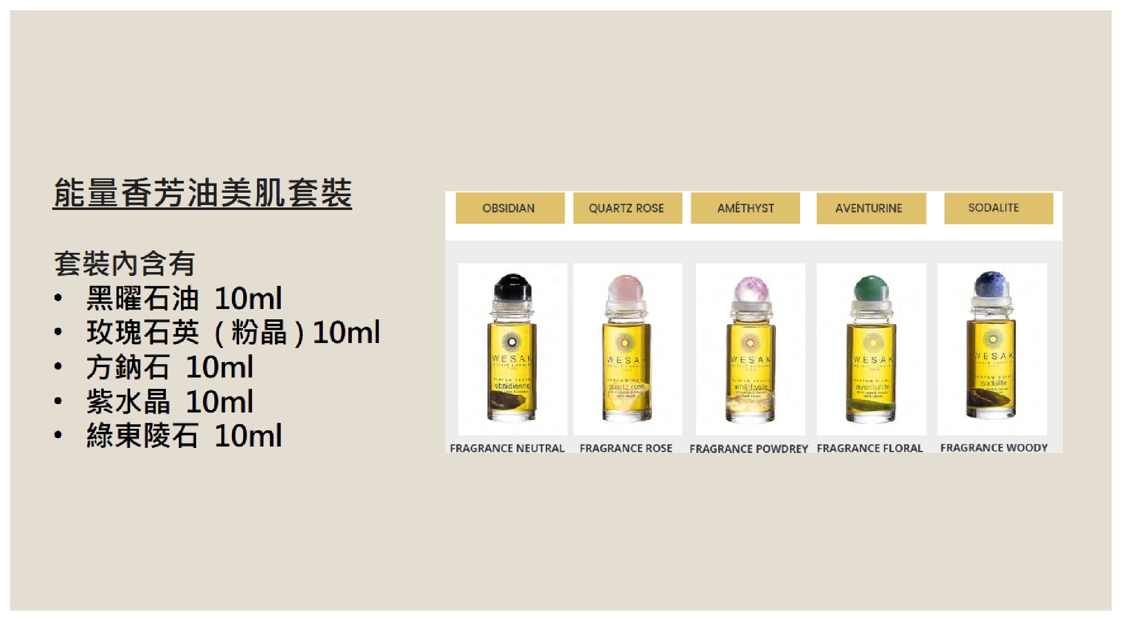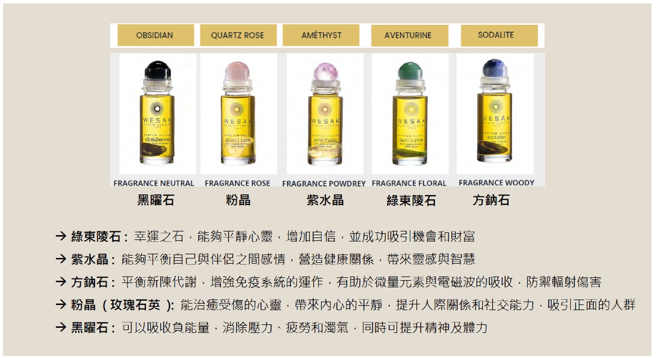 The Wesak Paris Collection brings together its 5 lunar elixirs in a refined setting in a discovery box. To keep for yourself or to give as a gift, the box allows you to live a unique experience. The Wesak Paris elixirs discovery box consists of 5 miniature lunar elixirs, 10 ml format: Obsidian - Sodalite - Amethyst - Rose Quartz - Aventurine