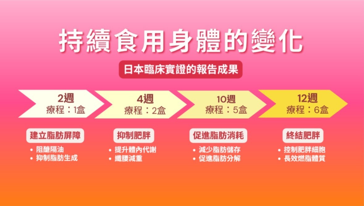 ● 速效阻截大餐威脅,阻斷糖油轉化並加速分解體內多餘脂肪及降低脂肪細胞儲存量,有助維持及回復輕盈體態