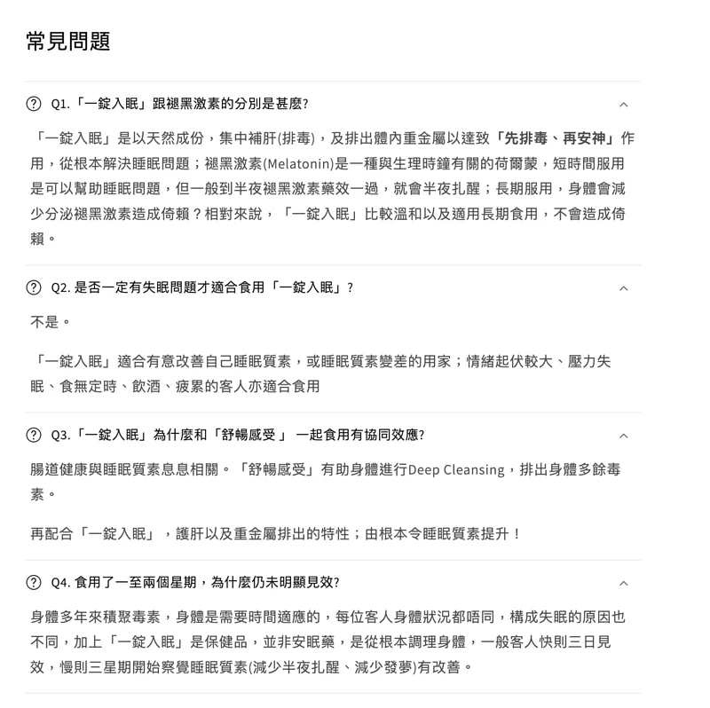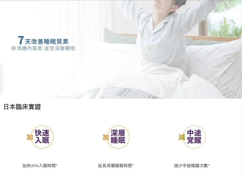 「一錠入眠」的成分組合,幫助放鬆身心,排清毒素,